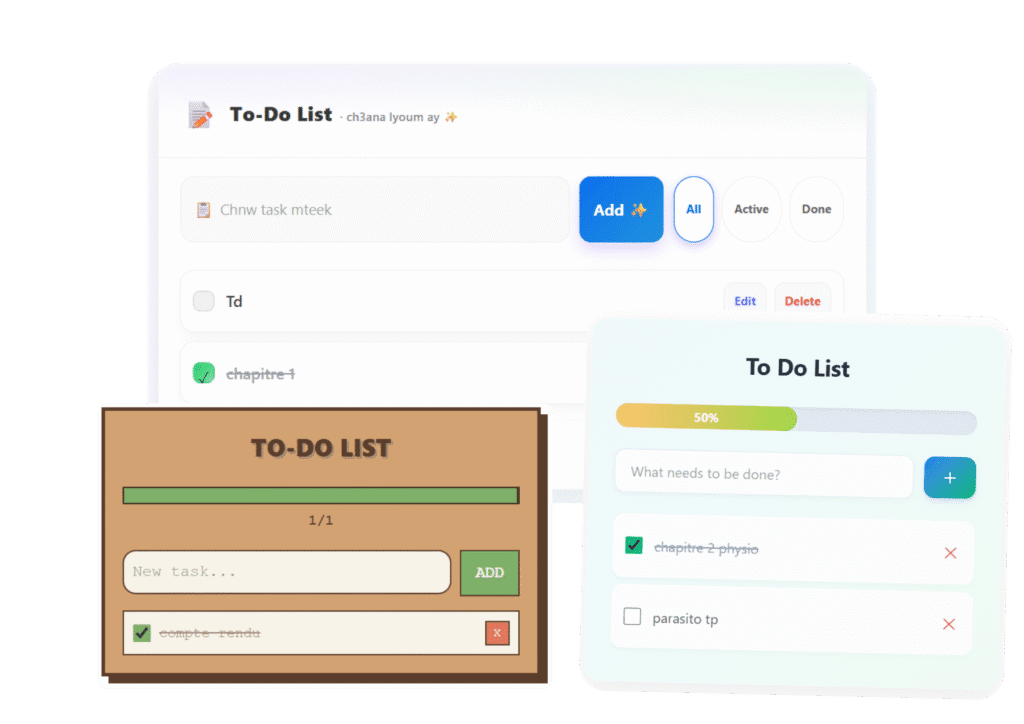التودو ليست هي الطريقة الوحيدة إلّي تنجم إتبّع بيها شنوة لازمك تعمل و شنوا كملت من دروس . الليستة هاذي تعاونك تتذكر شنوة الخدمة لي لازمك تعملها و قداه من تاسك كملتها. مغير تو دو ليست باش تكون متشتت ماتعراش شنوة كملت قريت و شنوة مازالك. نوفرولكم أكثر من تو دو ليست ، أكثر من ديزاين آيستاتك يشرهك على القراية